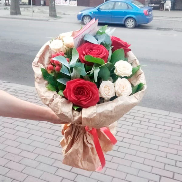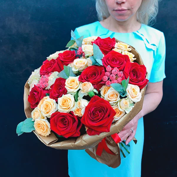 Красивое сочетание различных видо роз. Букет выбрала так как мне понравилось как реально выглядят фото в руках получателей. Очень рада, что букет был очень похож на картинку. В целом довольна.